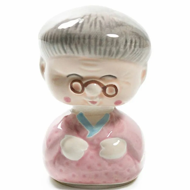 No matter how much you try to resist it, Bobble Head dolls are just fun! Mix and match from our abundant collection. This one is a sweet little grandma – 2.5″ tall. Ceramic.