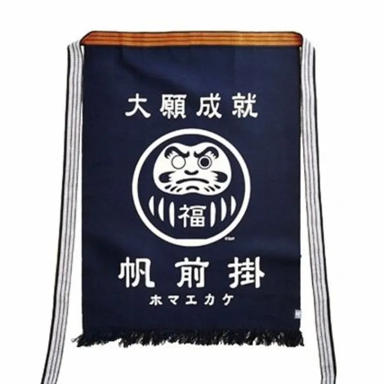 Maekake is a traditional style of Japanese apron, tied at the hips and worn by craftsmen and the staff of certain shops. Maekake aprons have been favored by workmen since the 15th century Muromachi period. The name maekake comes from mae, meaning front, and the verb kakeru, to hang. The simple design, a thickly woven square of cotton cloth with long straps, displays both the taste and practical wisdom of the garment’s original creators.