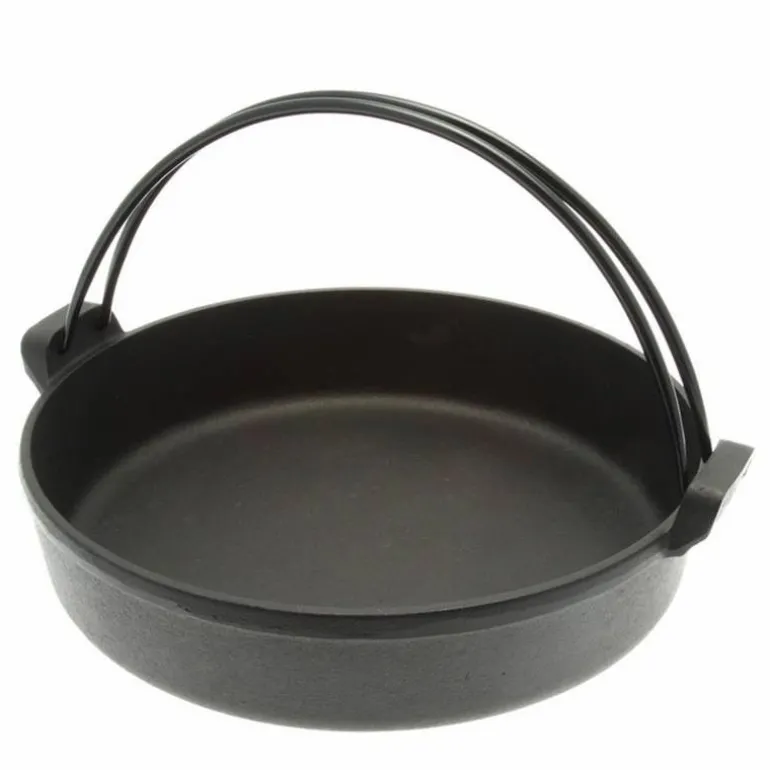 Cast iron sukiyaki pan with handle by Iwachu Japan. Sukinabe Black Nambu 24cm.