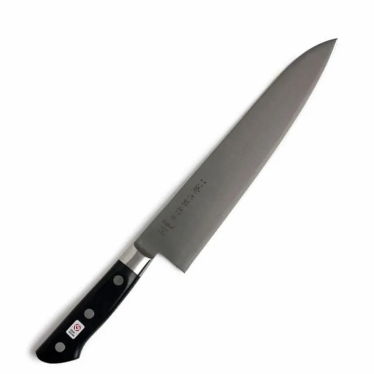 Tojiro, in Niigata Prefecture, produces a wide range of knives for both professional and home use. This DP Series knife series is made with cobalt alloy steel encased in 13-chrome stainless steel for Professional Use. The three anchor and bolster structure in the design of the handle adds to its durability – leading to less cracks and loosening that one may experience with other knives. Â