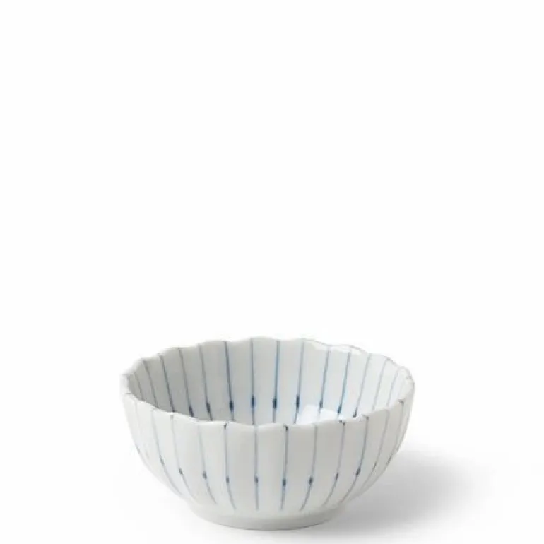 This beautiful and elegant design is reminiscent of the underside of an umbrella (kasa). The delicate blue lines are the perfect accent for the scalloped edges throughout this series. This wonderful little bowl is perfect for sauces, candy, spices or even for soaps and votive candles!