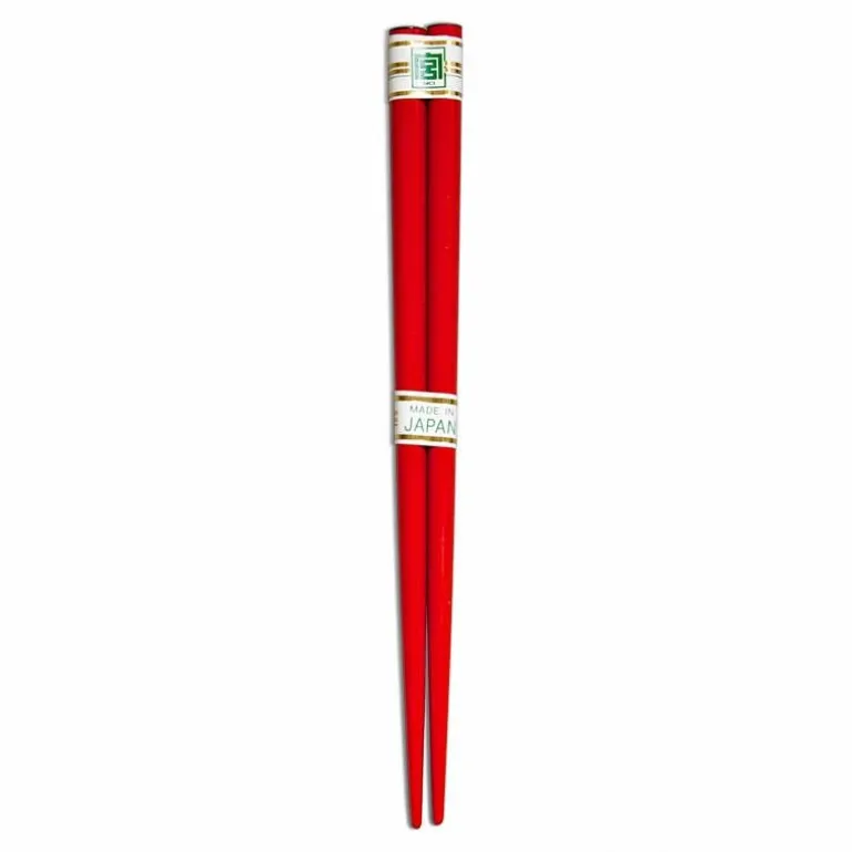 Red lacquered chopsticks.