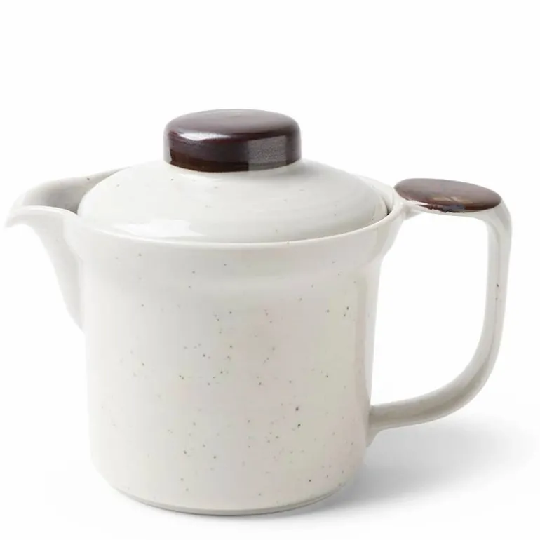 Beautiful glossy white speckled teapot. Stainless steel tea strainer included.