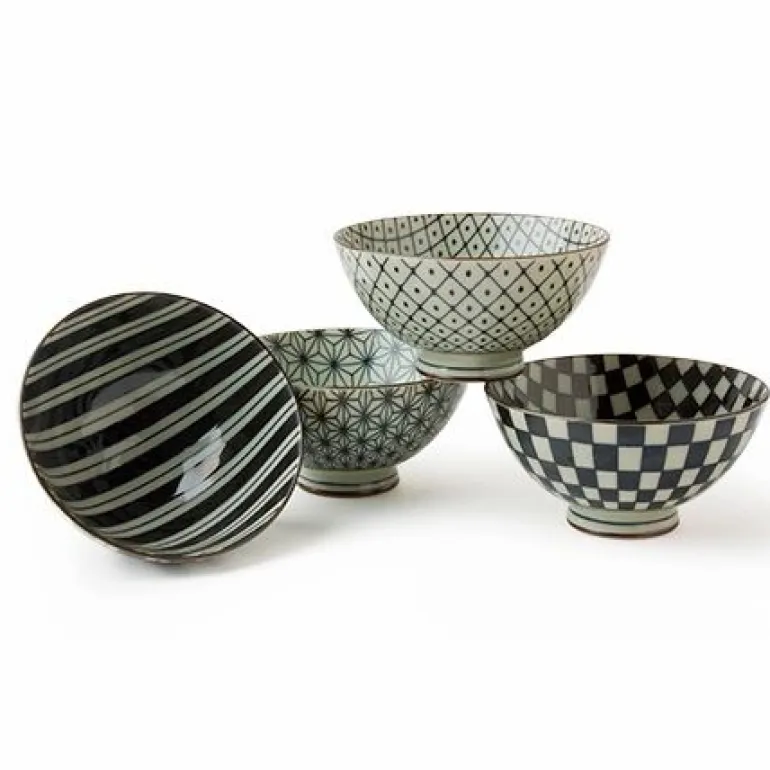 Our most popular bowl set reinterpreted in a cool color scheme. Traditionally rice bowls but these can be used for anything! Ice cream, snacks, as jewelry holders, and of course, to shoot your mise-en-place for your super hip cooking blog posts! The color is black and white with a greenish tone.