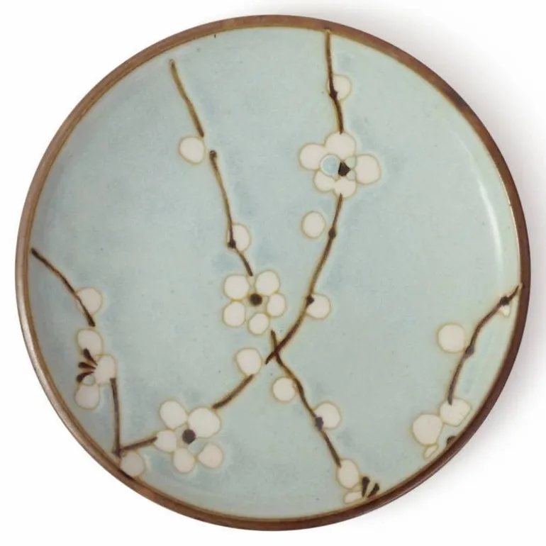 The Spring Blossoms Series brings rich color to the table. This serenely beautiful platter features a cool blue background and delicate spring blossoms to complement your food. This cute 4.75″ diameter round plate is perfect for cookies, tea bags, candly or to hold a pretty votive candle or soap. Also works as a coaster for the coordinating teacup [item# F734].