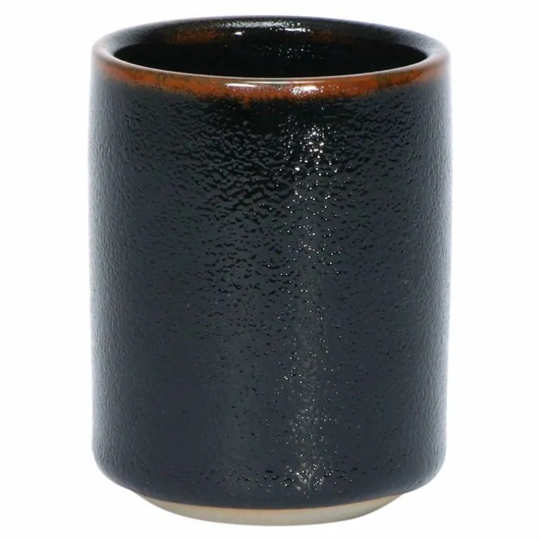 The Tenmoku glazed bowls were originally brought back from China by Japanese priests for use in tea ceremonies. Still popular and used in a variety of tableware pieces, the Tenmoku glaze is a timeless classic. Black goes with everything! 8 oz. capacity. Dishwasher/microwave safe. Made in Japan.