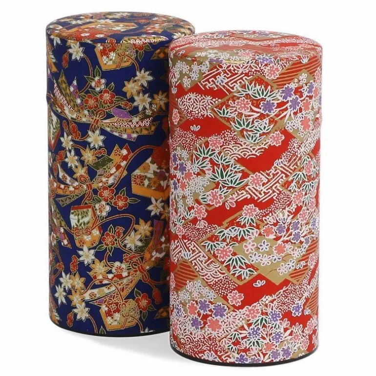 Used for holding loose tea leaves, these beautiful tea canisters are hand wrapped with Japanese washi paper so that the design is not compromised when the lid is on. No need to hide these tea canisters away in a cupboard! These beautiful holders are as soothing as the tea itself. Metal inner lid helps keep the tea fresh. 6″ h; 7 oz. capacity. Made in Japan. The designs are assorted.*